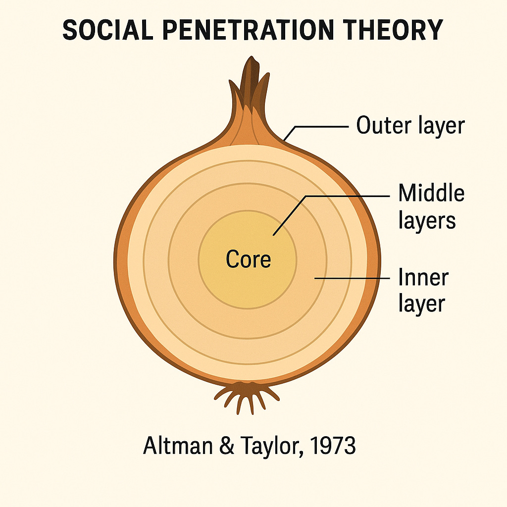 Last week, we considered the potential shift from sharing into oversharing with reference to inappropriateness for context and the level of intimacy in the relationship. A complementary concept to build upon this idea is social penetration theory, which was developed by Altman and Taylor in the 1970s.